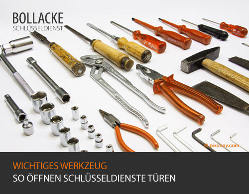 Ausgesperrt? Schlüssel verloren? Im Notfall hilft der Schlüsseldienst. Um ein Schloss durch Herumprobieren zu öffnen ist sehr viel Zeit und Geschick nötig. In einem solchen Fall ist es ratsam, sich an den Schlüsseldienst Bollacke aus Münster zu wenden, der das Schloss mit den geeigneten Werkzeugen und dem notwendigen Know-How in einer annehmbaren Zeit zu öffnen vermag. Einige der gängigen Werkzeuge sollen hier kurz vorgestellt werden.